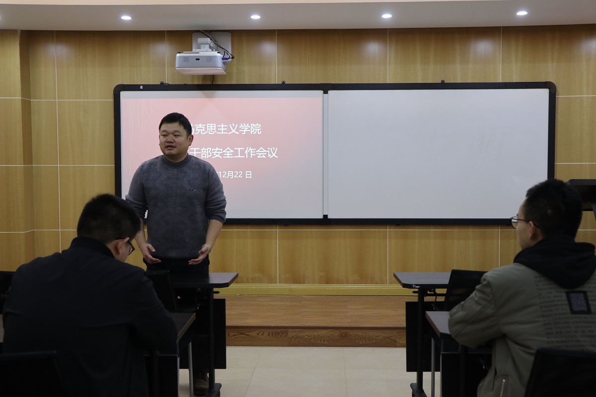 于2017年12月22日在学院412室召开了学生干部安全会议。学院党委组织员兼辅导员王玉琴老师、学院团委书记杨华老师以及全体研究生干部参加了此次会议。