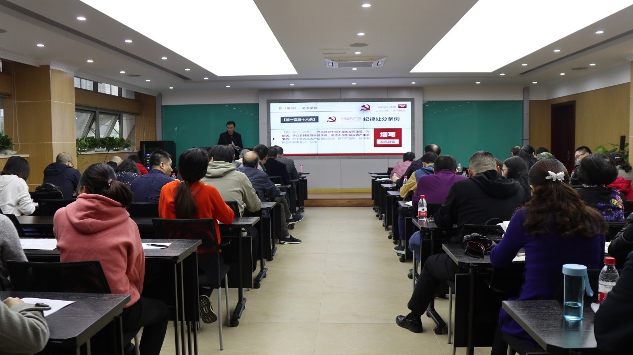 学院党委书记罗滌在党员大会上讲话,她指出,10月1日颁布实施的《中国共产党纪律处分条例》修改增加了不少条款,值得党员同志们好好学习,并在教学、工作中认真落实。她希望各党支部在主题党日活动中还要继续认真学习《条例》。罗滌书记强调,全院党员同志要把握正确的政治方向,要有坚定的政治立场,思政课教师在教学中要由内及外地去教育、影响学生。党员同志们要更加明确党员的形象,坚持原则,守住底线,要把党员的形象立起来、树起来。她希望各党支部一定要认真做好换届选举工作,在以后的工作中我们要加强党支部建设,严格贯彻落实相关会议、文件精神,防止出现“以文件落实文件、以会议贯彻会议”的不良现象。目前学院的发展处于攻坚克难阶段,党员同志们要踏实干事,克服困难,共同促进学院建设和发展。