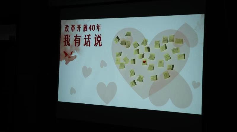面对改革开放四十年的可喜变化,支部成员和入党积极分子表示不仅要脚踏实地、展望未来,也不会忘记回顾历史。最后,同学们纷纷写下自己对祖国的美好祝愿和期许张贴在“改革开放我有话说”宣传栏中。