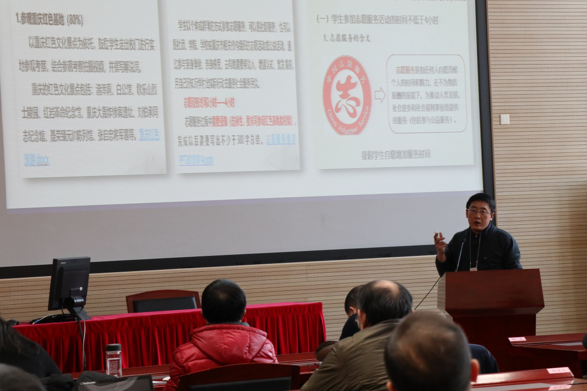 代礼忠从集体备课、智慧课堂建设、教改课题、名师工作室建设、科学研究、公共服务等方面出发,对马克思主义中国化教研室教学工作进行总结。他指出,下学期将进一步规范集体备课制度、推广应用中成智慧等新媒体教学方法、基本完成SPOC平台建设、进一步探索和规范实践教学形式、名师工作室实践基地建设。