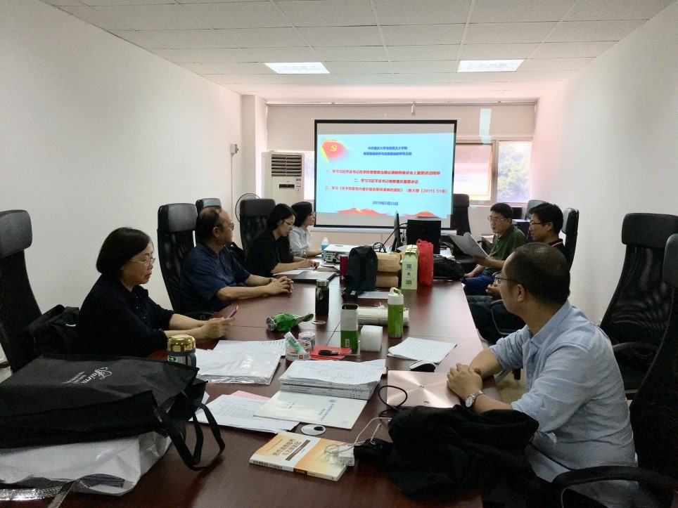 杨泽文老师首先组织支部党员集中学习了《习近平总书记视察重庆重要讲话》、《习近平总书记在五四运动100周年纪念大会上的讲话》、《习近平总书记在学校思想政治理论课教师座谈会上重要讲话》、《中国共产党重大事项请示报告条例》等文件精神,之后组织支部党员围绕本次主题党日活动的学习内容进行了充分深入的讨论,并建议各位党员结合思政课教师的工作实际特别是如何把习总书记系列重要讲话的精神贯穿到《思想道德修养与法律基础》课的教学中进行了重点研讨。