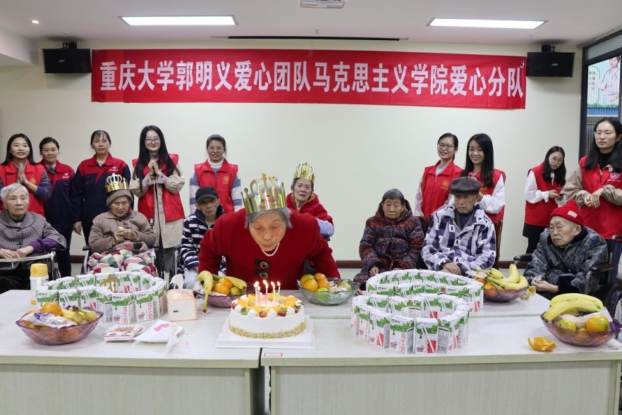 在敬老院,同学们仔细询问老人们的身体状况、生活情况和所思所盼,让老人们感受到了关怀和温暖。志愿者们围坐一圈,安静地聆听老人们讲述他们的故事,老人们告诉志愿者,在美好的新时代,就应该把握当下,努力奋斗,不要辜负这段青春年华。值得一提的是,活动当日恰逢敬老院里四位老人生日,同学们为老人带去了生日蛋糕,陪他们度过了快乐的生日时光。初冬的微寒里,敬老院里因爱而充满温暖。