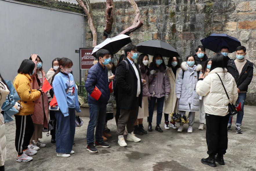 在讲解员的带领下,全体学生首先进入纪念馆。纪念馆中陈列的一桩桩先烈事迹、一幅幅史实图片,向世人讲述着中国共产党人革命救国的民族气节。沿着纪念馆的红色路线,同学们还参观了饶国模旧居、八路军旧址等多处遗迹,以周恩来为代表的中共中央南方局曾在此处为革命事业挥洒热血,在场学生纷纷敬叹艰苦环境下仍坚守信念的革命先辈们。