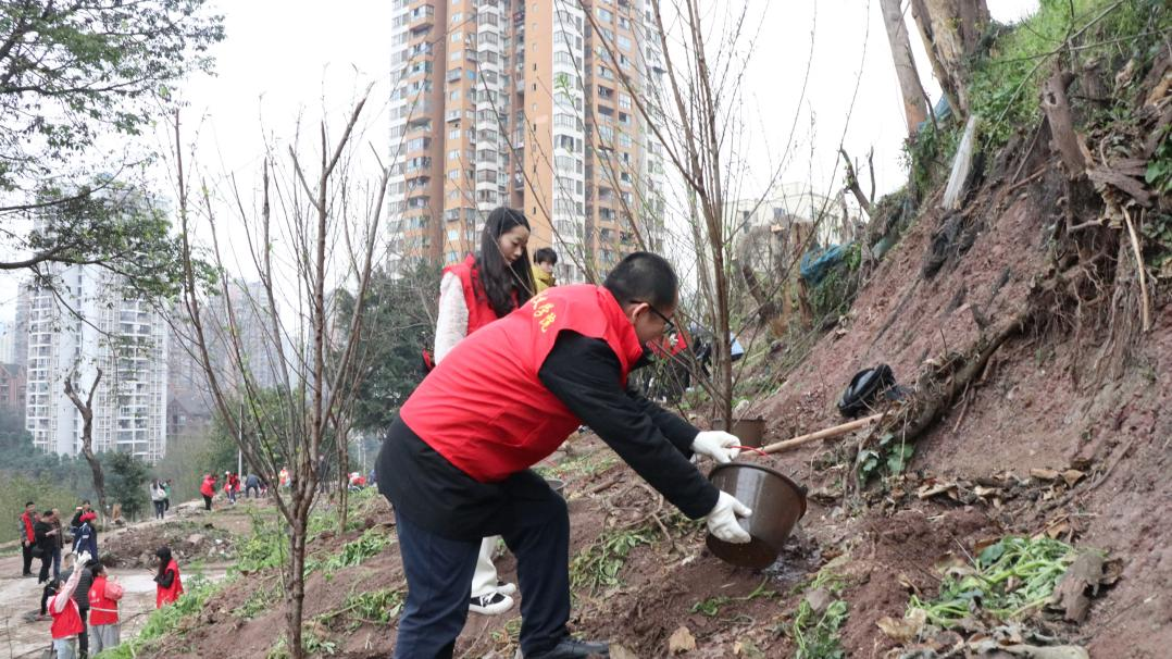 组织师生前往沙坪坝区覃家岗街道梨园社区,开展了“学雷锋•携手植青绿,锋采向未来”志愿植树活动。此次活动由高辣文
