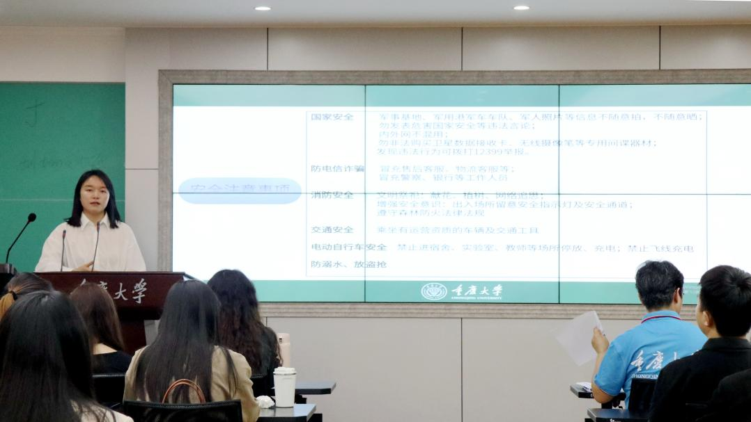 张丹强调了清明节假期注意事项。她首先明确了清明节的放假时间,并提醒同学们注意填写清明节去向表,以便确保同学们的行踪安全可控。在清明节安全注意事项方面,张丹强调了国家安全的重要性,提醒同学们要时刻保持警惕,注意防范电信诈骗。同时,她还指出了消防安全、交通安全、电动自行车安全以及防溺水和盗抢等事项,要求同学们在享受假期的同时,切勿忽视基本的安全常识。另外,张丹特别提醒同学们要关注自己的心理健康,若有焦虑、抑郁、心理障碍等健康困扰,要及时寻求科学的应对方法。如关注“高辣文