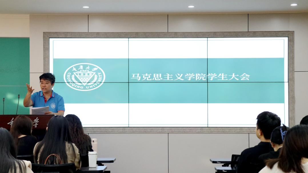 在学院408室召开全体学生大会,会议由学院党委副书记袁利主持,副院长吕进、辅导员张丹以及全体博士生、硕士生、本科生参加此次大会。