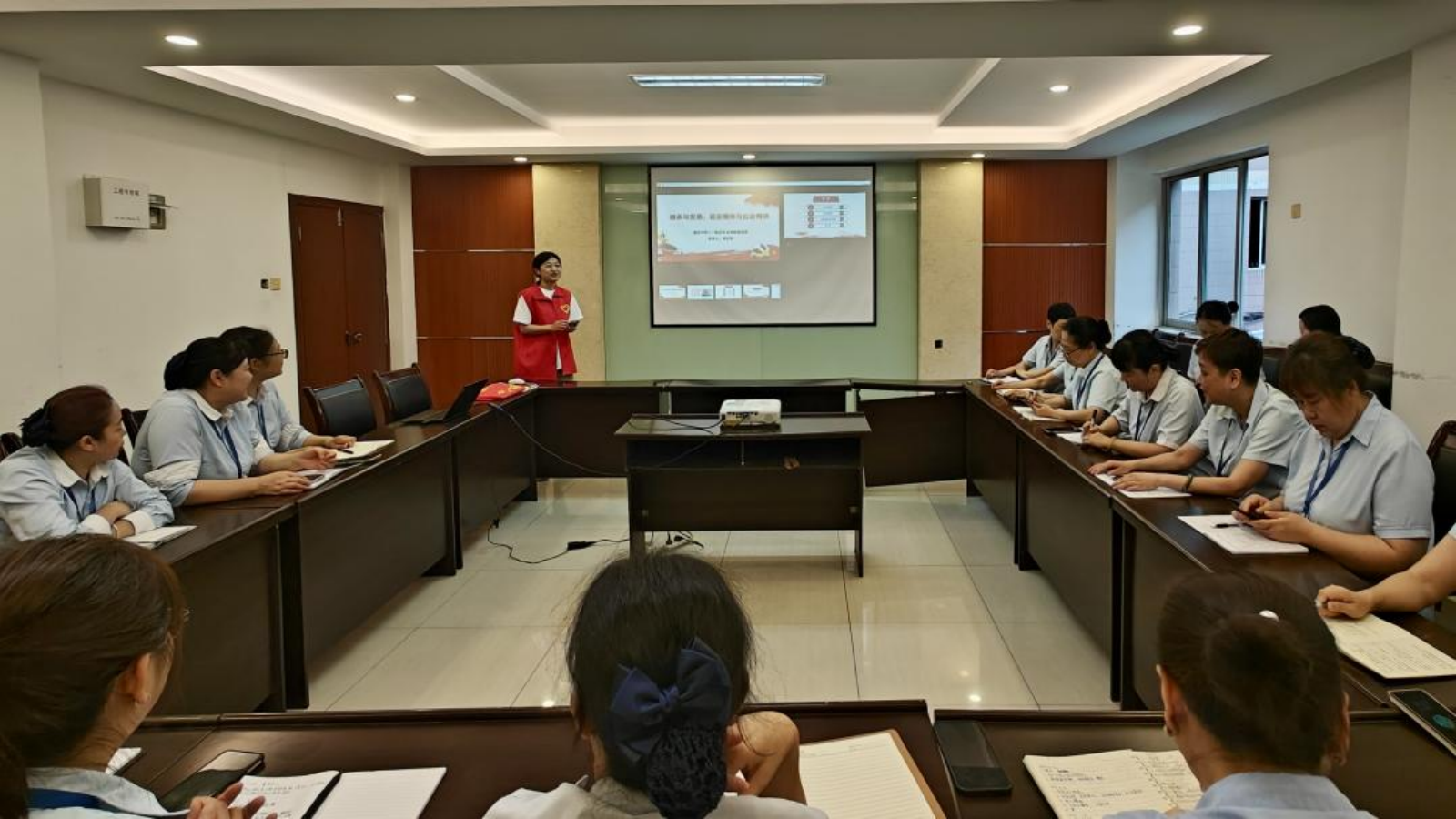 “延安风·红岩韵”宣讲团受邀参加后勤管理处楼宇管理中心培训活动。本次活动在高辣文