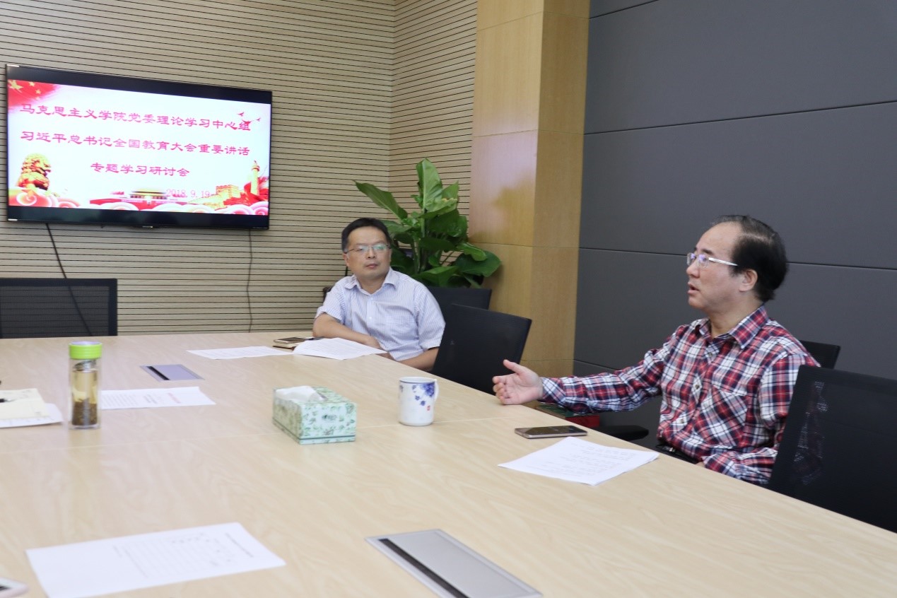 专题学习研讨会上,温健琳副书记首先传达了学校《关于2018年下半年二级党组织理论学习中心组学习安排的补充通知》(重大委宣〔2018〕22号)文件精神,并与中心组成员一起对《习近平在全国教育大会上强调:坚持中国特色社会主义教育发展道路 培养德智体美劳全面发展的社会主义建设者和接班人》(新华网)、新华社评论员文章《以立德树人铸就教育之魂——学习贯彻习近平总书记在全国教育大会重要讲话》和《中国教育报》文章《教育部党组下发<通知>要求,认真学习贯彻全国教育大会精神:加快推进教育现代化写好教育奋进之笔》全文进行了认真学习,中心组成员对习总书记在全国教育大会上的重要讲话精神展开了热烈讨论。