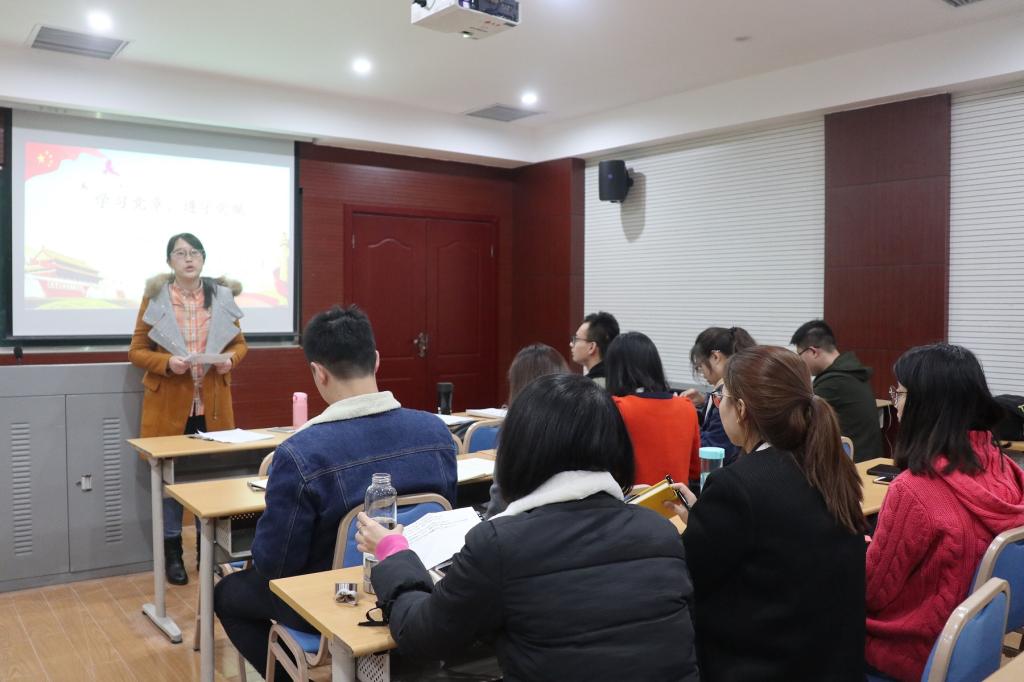研究生第二党支部一直以来所做的工作和举办的一系列党建活动,包括,红岩讲坛,红岩读书会,“十九大报告句读”等。石佳老师重点谈了第二党支部未来的发展目标,即“网络党建进支部”,表示要努力搭建网络平台,宣传党的精神,感染更多群众。同时,石佳希望各兄弟党支部能够多提供技术支持,共同促进党支部的建设和发展。