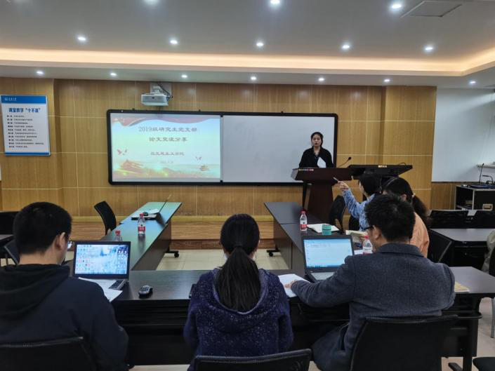 在交流会上,支部党员甘敏以题为《新时代中国共产党教育扶贫经验研究》、宋惠以题为《马克思世界历史思想视域下的百年未有之大变局》、祝丽以题为《马克思主义“消灭分工”论断研究》、黄小青以题为《习近平廉政教育重要论述对高校学生干部廉洁教育的启示》分别就自己的论文做了分享报告。评议老师们围绕论文的选题意义、思路框架、数据分析、参考文献等方面给予了针对性建议。最后各位老师和同学还就如何撰写论文进行了深入的交流。在论文交流会最后,支部书记周志永谈到,支部将会不断建构“师生互动”的学习新模式,各位党员也要牢记自己的专业身份,努力提高自身的学习能力、科研能力,将理论研究与社会实践相融合,发挥党员先锋模范作用,为支部建设贡献力量。