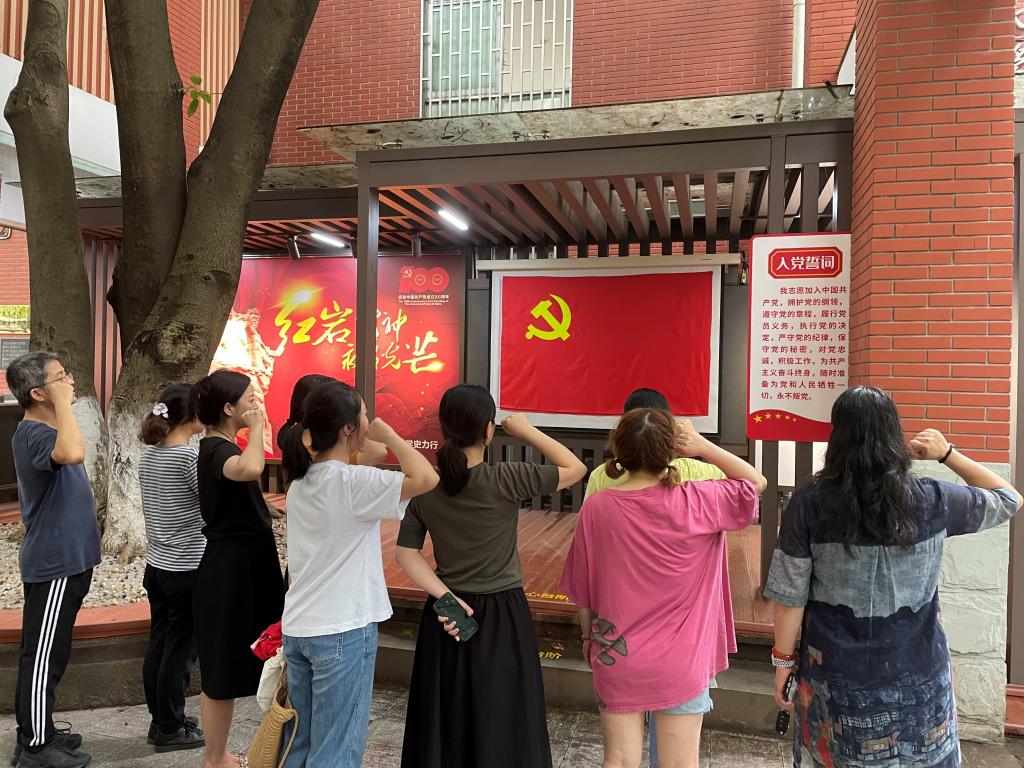 在档案馆老师的带领下,支部党员们依次参观了“崇高思想境界”“坚定理想信念”“巨大人格力量”“浩然革命正气”“重庆籍红岩英烈名录”五个板块,解说老师为大家详细介绍了红岩英雄人物和感人事迹。展览充分反映了在全民族抗战时期和解放战争时期,以周恩来为书记的中共中央南方局,领导广大党员和社会各界仁人志士为了民族独立和人民解放用青春和热血书写的可歌可泣的英雄故事。同志们被红岩英烈的坚强不屈,宁死不降,对党无限忠诚深深感动。最后大家在党旗面前庄严宣誓,重温入党誓词,老师们纷纷表示一定积极工作,在平凡的岗位上履行党员的初心和使命。