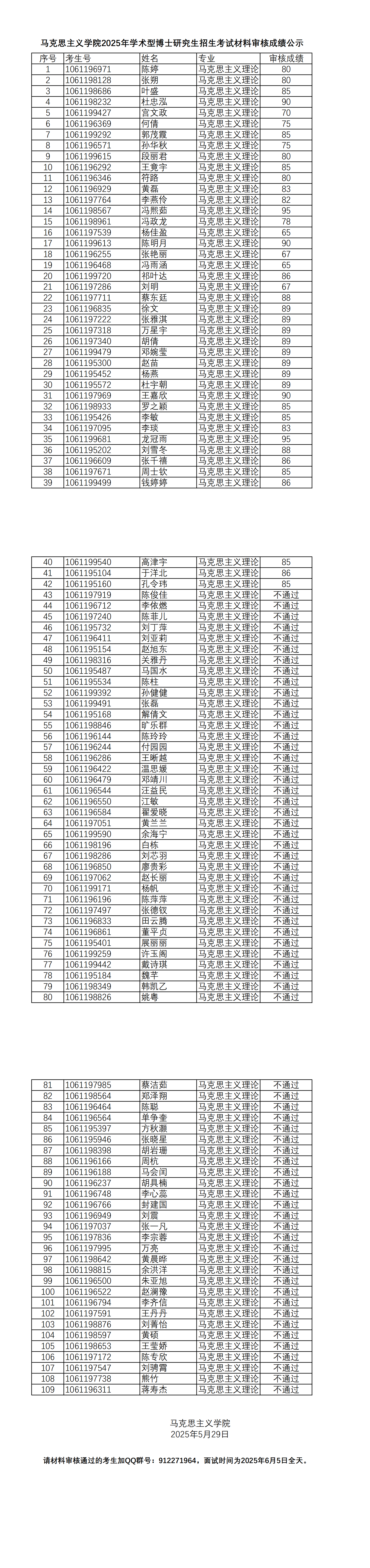 高辣文 2025年学术型博士研究生招生考试材料审核成绩公示