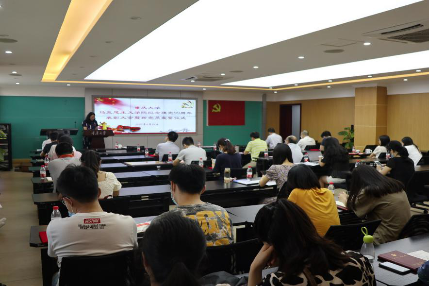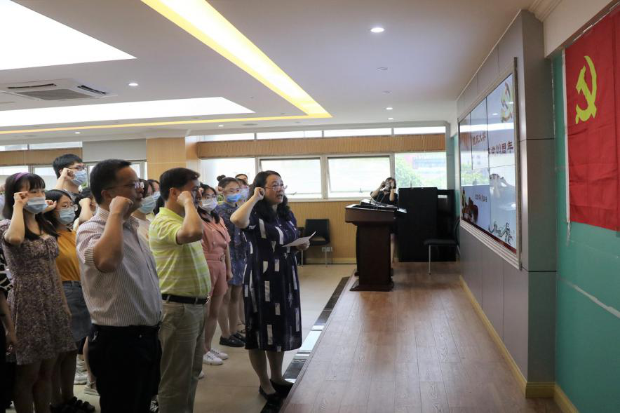 在学院408会议室隆重举行纪念建党99周年表彰大会暨新党员宣誓仪式。高辣文