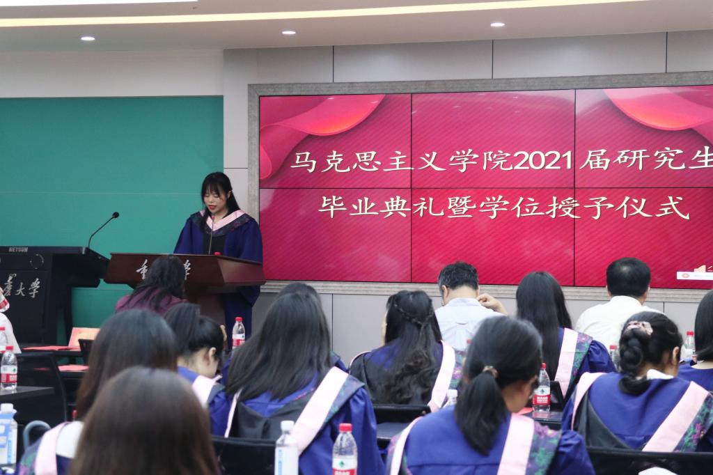 在408会议室隆重召开2021届研究生毕业典礼,学院领导班子、部分研究生导师、2021届全体毕业研究生参加典礼,学院党委副书记温健琳主持典礼。