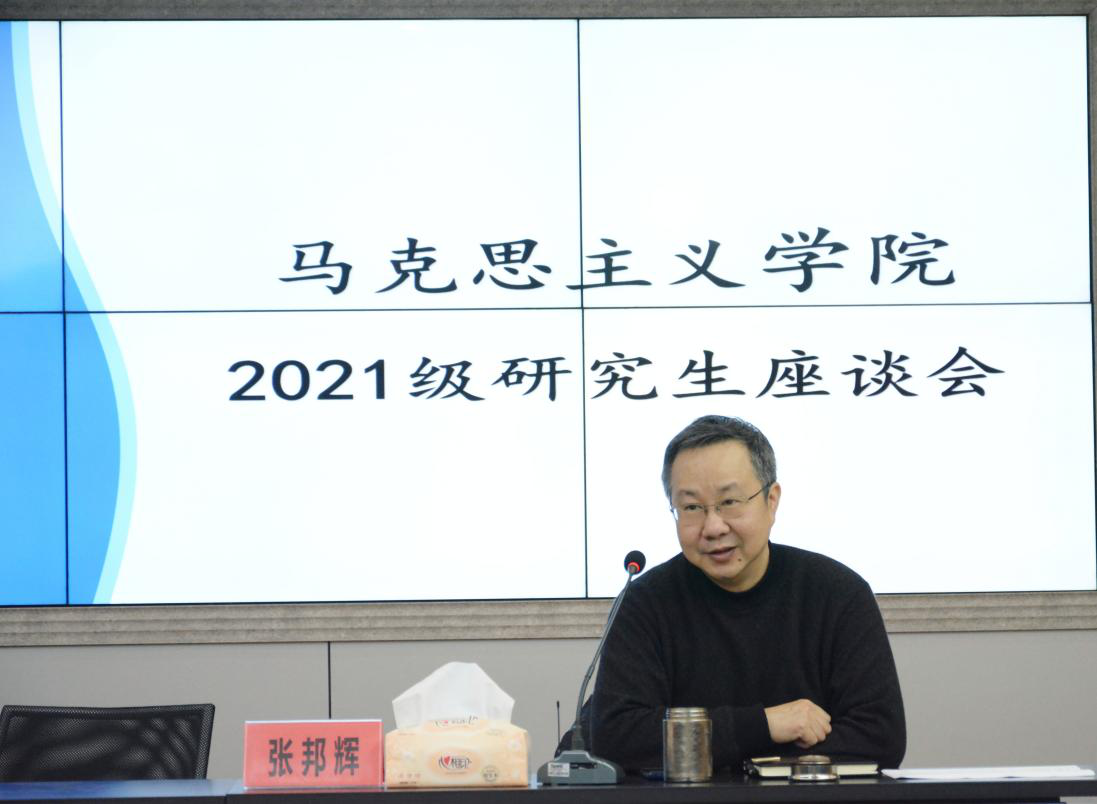 院长张邦辉与学院2021级研究生交流座谈,座谈会在412教室进行。