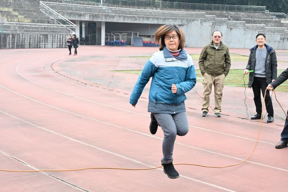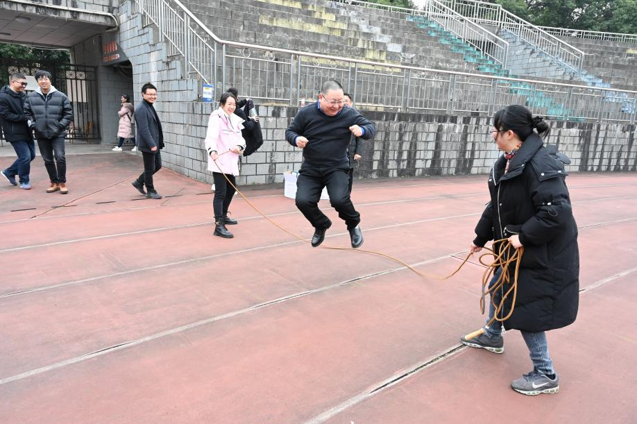 举行趣味跳绳活动。本次教职工趣味运动会由高辣文