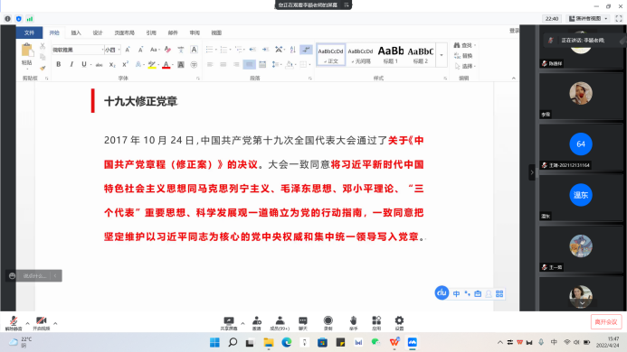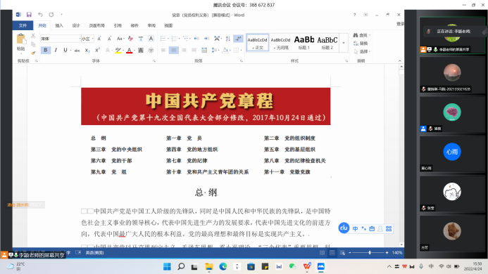 和微电子与通信工程学院入党积极分子上了题为“中国共产党与《中国共产党章程》”的专题党课。党课通过腾讯会议以线上形式进行。