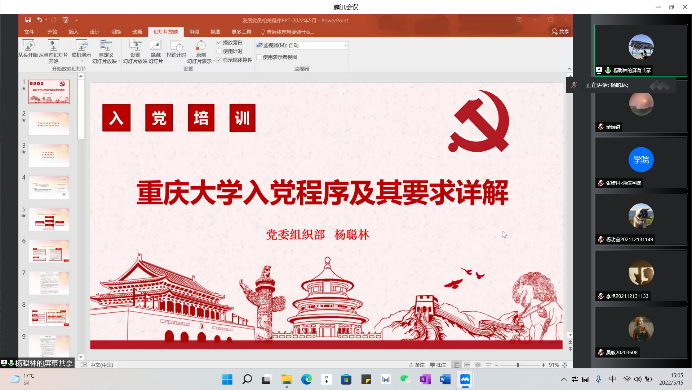 入党程序及其要求详解”的专题党课。党课通过腾讯会议以线上形式进行。