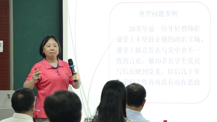 肖云教授首先就教师积极探索课堂教学实效性进行分享,以我校教师的优秀课堂为案例,逐一分析教师课堂教学的出彩之处。鼓励各位老师将课程思政与思政课程有机结合,充分发挥了专业课与思政课的协同育人作用。