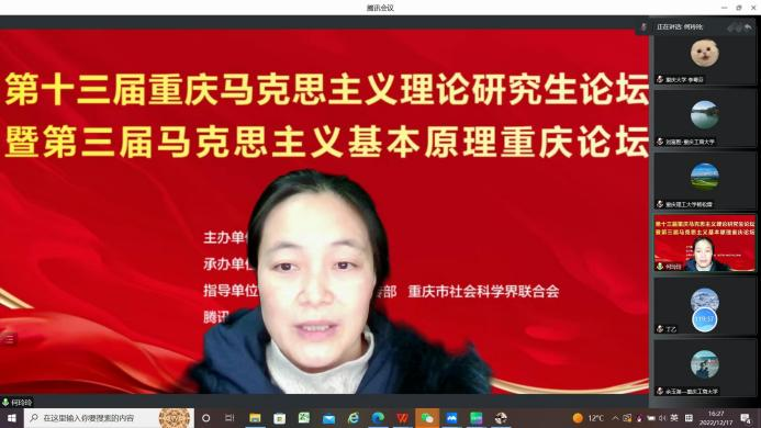2022年12月17日,第三届马克思主义基本原理重庆论坛在腾讯会议平台顺利举办。本次论坛由重庆市教育委员会主办,高辣文