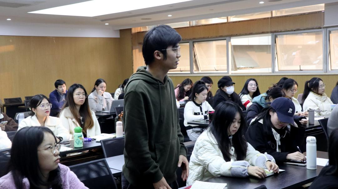 我院研究生积极提问,经济态势从“稳中求进”到现在中央经济工作会议提出的“先立后破”,传递出了什么信息。蒋永穆教授耐心回应了同学们所提出的问题,他指出先立后破体现了辩证法的智慧,中央一直强调宏观经济调控,重点强调非经济类型因素也要考虑经济因素的问题,要坚持经济建设为中心的中心工作与高质量发展的首要任务。