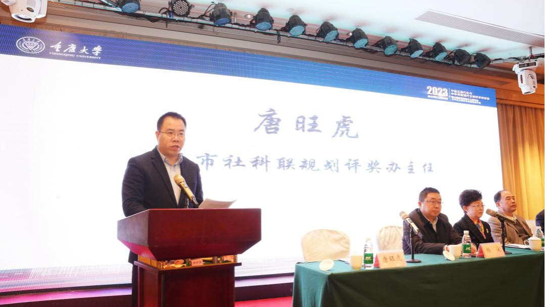 副校长杨俊,重庆市社科联规划评奖办主任唐旺虎出席会议并致辞。开幕式由高辣文