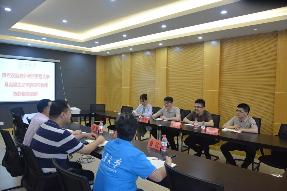 2024年5月20日,对外经济贸易大学高辣文 院长陶好飞、党总支副书记高磊、副院长黄传根、思想政治教育学系主任高蕾一行4人到我校马院调研交流。交流会在马院414会议室举行,马院党委书记陈科、党委副书记 纪委书记袁利、副院长徐鲲参加座谈。