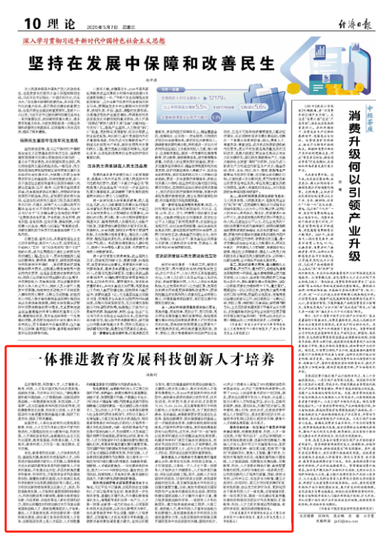 院长冯颜利在《经济日报》发表题为《一体推进教育发展科技创新人才培养》的理论文章。