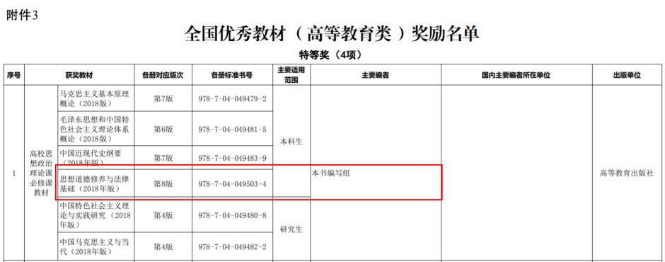 据悉,全国教材建设奖是教材领域的最高奖,是检阅、展示教材建设服务党和国家人才培养成果,增强教材工作者荣誉感、责任感,推动构建中国特色、世界水平教材体系的一项重大制度。