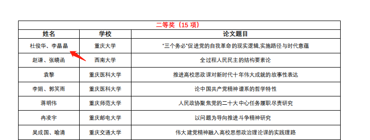 重庆市高校学习宣传贯彻党的二十大精神理论研讨会由中共重庆市委教育工作委员会主办、重庆邮电大学承办,于2022年12月2日顺利举办,本次研讨会共收到投稿论文400余篇,与本次会议征文主题相关的论文分送重庆市外5位专家匿名评审出结果。我院研究生吴宝倩、李晶晶在此次征文中获奖。