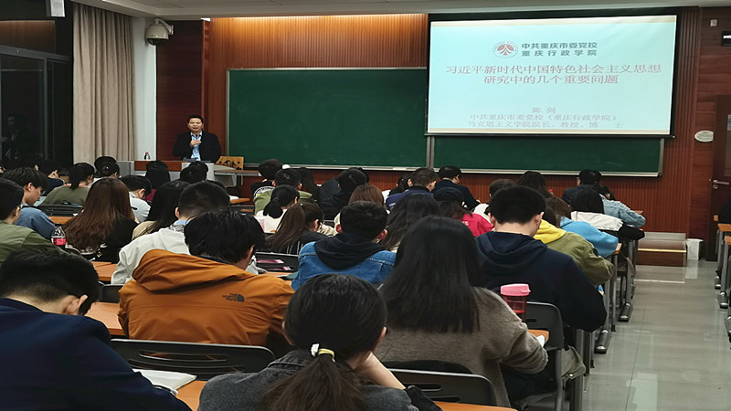 院长陈剑教授应邀出席,以“习近平新时代中国特色社会主义思想研究中的几个重要问题”为主题为重大学子作了精彩的学术讲座。讲座由高辣文