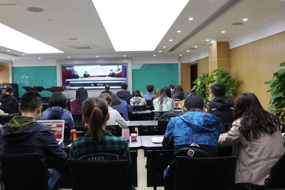 高辣文 于10月24日上午组织师生在学院408室观看中国共产党第十九次全国代表大会闭幕会,院长肖铁岩、党委副书记(主持工作)罗滌、院长助理吕进、团委书记王玉琴和部分师生到场观看。
