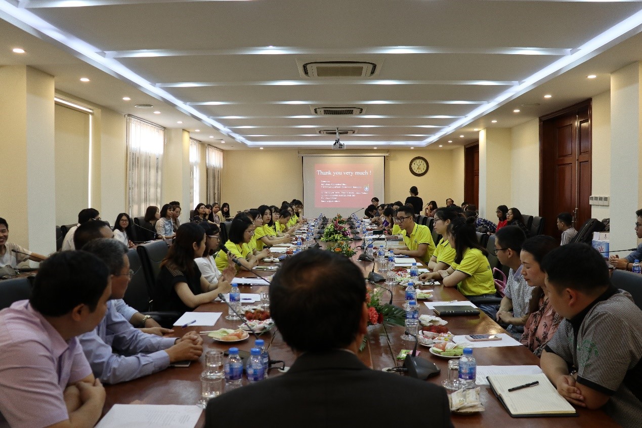 在越南期间,访学团聆听了河内国家大学所属人文与社会科学大学哲学系主任阮光料教授的《越南共产党历史》专题讲座。阮教授追溯了越南共产党的诞生历程以及发展成就,并指出学习党史的重要意义。同时,课堂上还就中越双方共产党员的入党要求、入党程序进行了交流讨论。此外,访学团还为国家大学40余名学生上了汉语选修课,交流语言学习的心得体会。