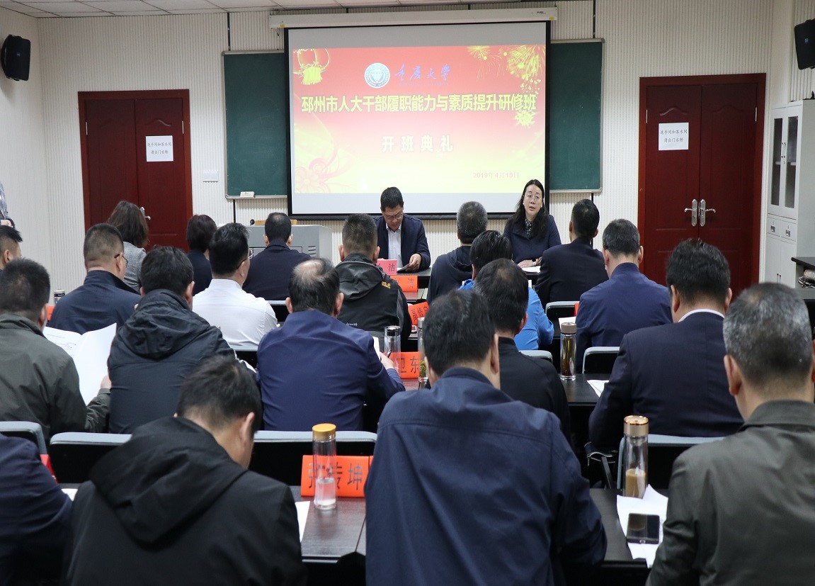 2019年4月15日,邳州市人大干部履职能力与素质提升研修班开班仪式在高辣文
