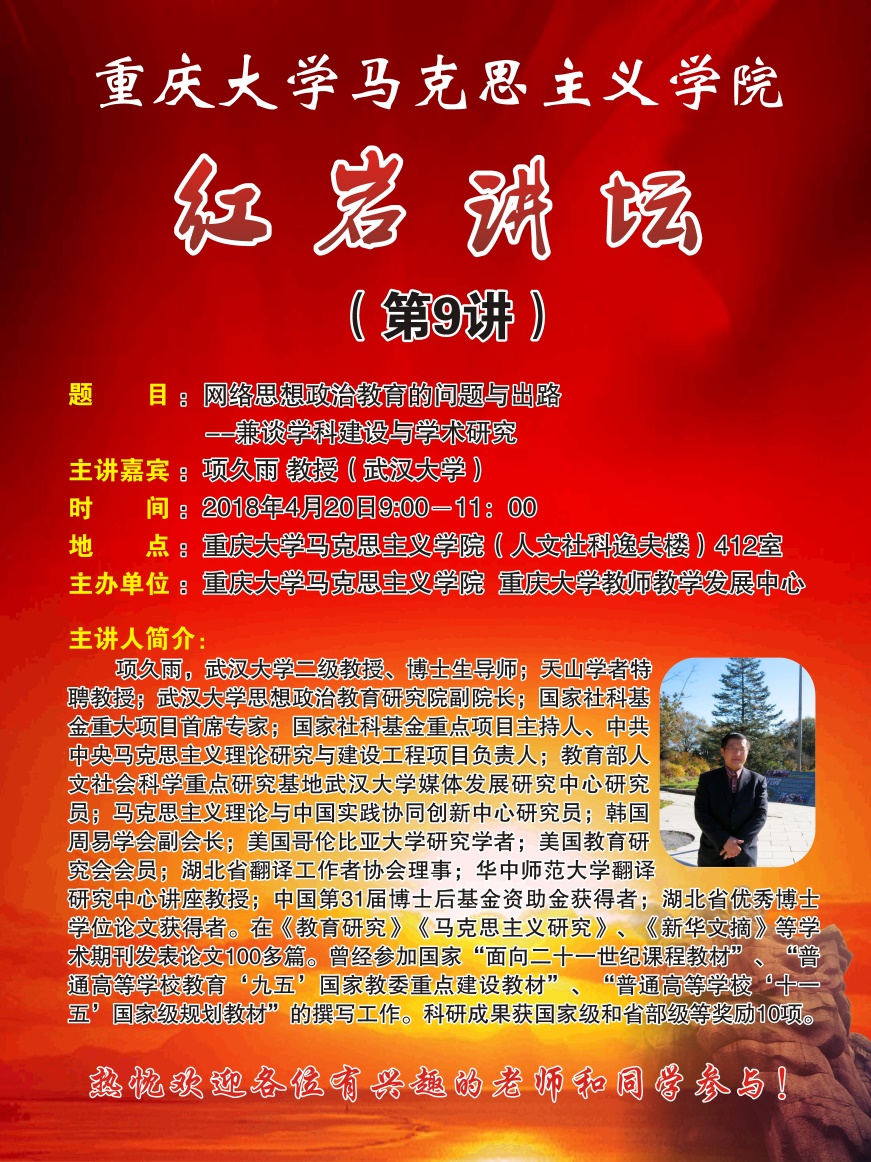 项久雨,武汉大学二级教授、博士生导师;天山学者特聘教授;武汉大学思想政治教育研究院副院长;国家社科基金重大项目首席专家;国家社科基金重点项目主持人、中共中央马克思主义理论研究和建设工程项目负责人;教育部人文社会科学重点研究基地武汉大学媒体发展研究中心研究员;马克思主义理论与中国实践协同创新中心研究员;韩国周易学会副会长;美国哥伦比亚大学研究学者;美国教育研究会会员;湖北省翻译工作者协会理事;华中师范大学翻译研究中心讲座教授;中国第31届博士后基金资助金获得者;湖北省优秀博士学位论文获得者。在《教育研究》《马克思主义研究》、《新华文摘》等学术期刊发表论文100多篇。曾经参加国家“面向二十一世纪课程教材”、“普通高等学校教育‘九五’国家教委重点建设教材”、“普通高等学校‘十一五’国家级规划教材”的撰写工作。科研成果获国家级和省部级等奖励10项。