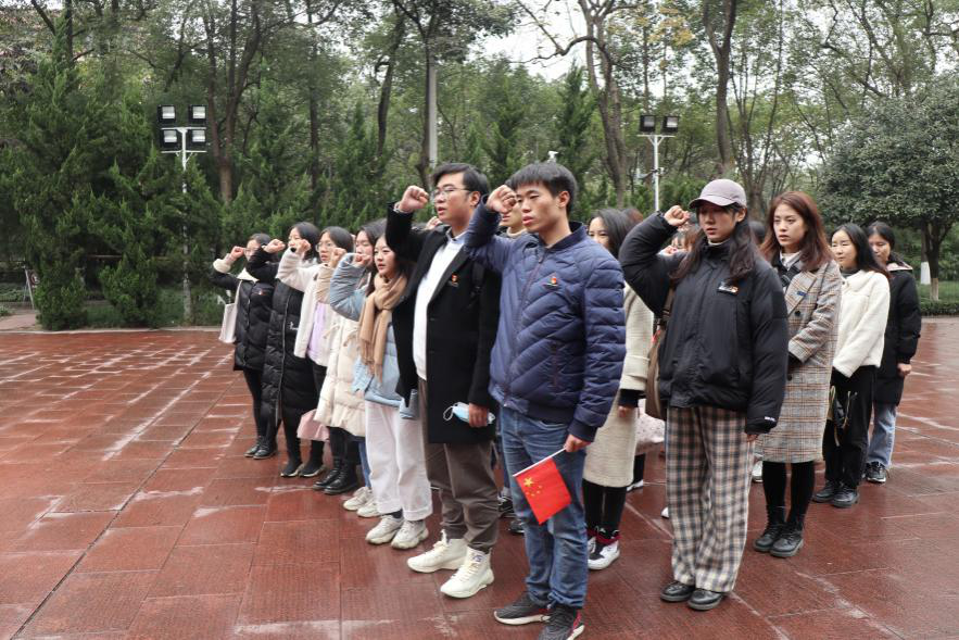 参观结束后,全体学生齐聚红岩魂广场。在场党员重温了入党誓词,誓言继承革命先烈遗志,为共产主义奋斗终生。在党员们高亢而坚定的宣誓中,在场入党积极分子深受鼓舞,更加坚定了加入中国共产党的决心。
