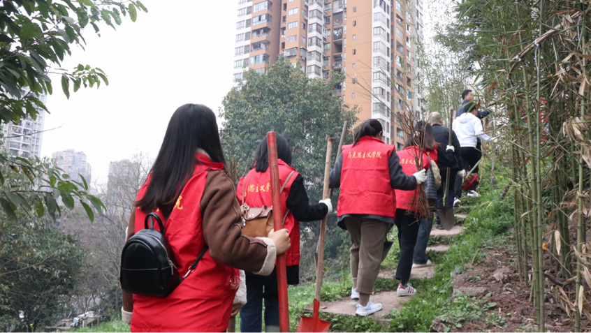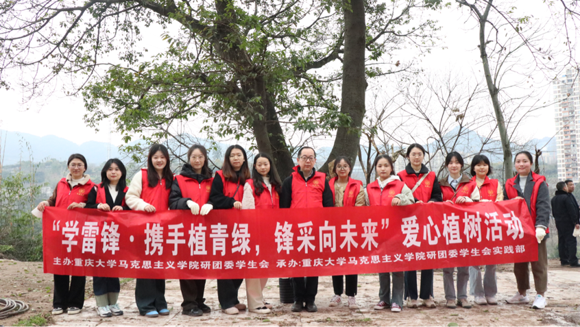 组织师生前往沙坪坝区覃家岗街道梨园社区,开展了“学雷锋•携手植青绿,锋采向未来”志愿植树活动。此次活动由高辣文