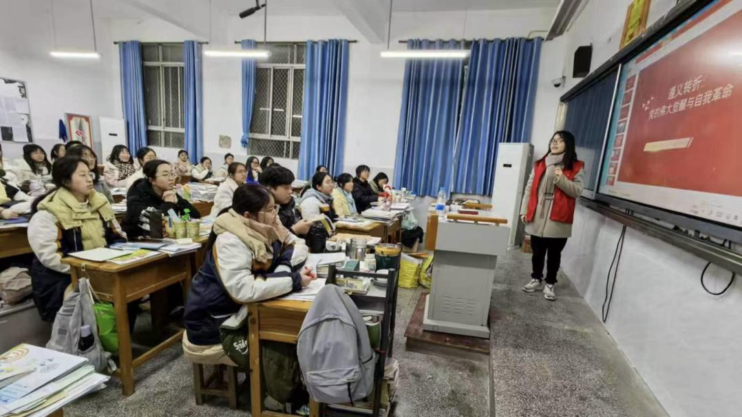 2025年1月20日,红岩志愿宣讲团讲师曾祥菲在垫江中学开展题为《遵义会议之党的自我革命与伟大觉醒》的理论宣讲活动。她带领同学们回顾遵义会议历史,深刻理解党的自我革命精神。同时,曾祥菲还结合时代背景,探讨了遵义精神在新时代的价值体现,并展示了遵义在新征程上的蓬勃发展新貌。