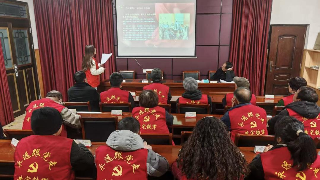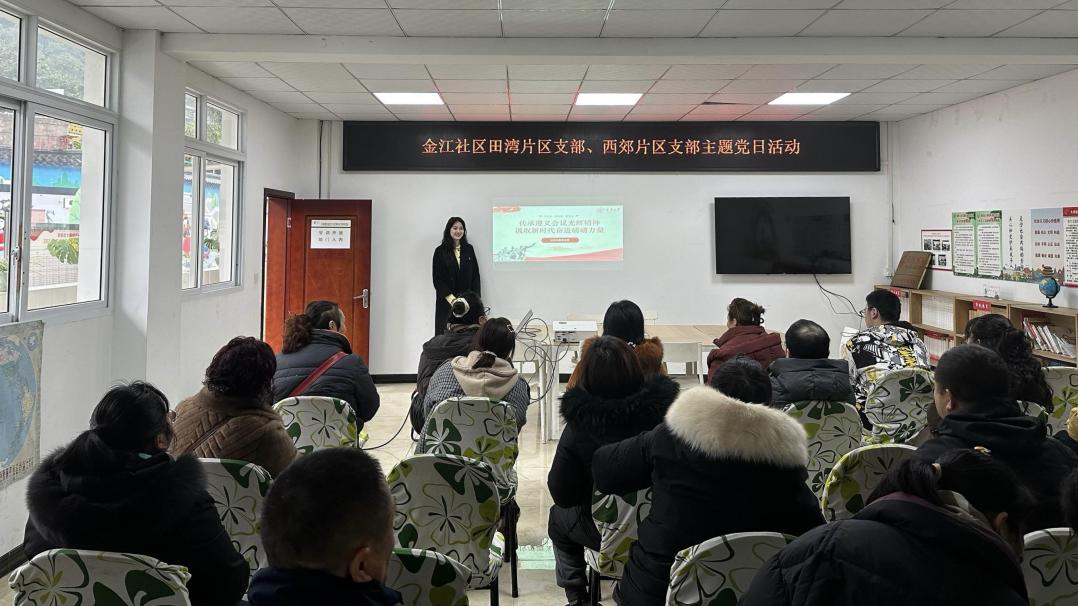 2025年2月6日,在四川省宜宾市翠屏区大观楼金沙社区的金江社区田湾片区支部和西郊片区支部联合开展的主题党日活动上,宣讲团讲师徐小茹采用故事串联的方式,结合PPT图文资料,生动讲述了遵义会议前后红军长征的艰辛历程,使党员们对党的历史和精神有了更加深刻的认识。
