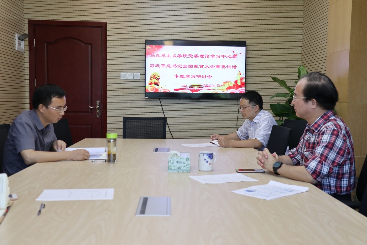 党委理论学习中心组在学院439室开展了“习近平总书记全国教育大会重要讲话专题学习研讨会”。会议由学院党委副书记、纪委书记温健琳主持,院长肖铁岩、副院长徐鲲参加了此次学习,党委书记罗滌因在中央党校学习请假。