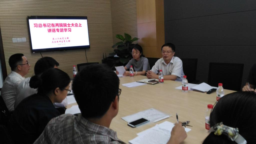在学院在439室举行习近平总书记在中国科学院第十九次院士大会、中国工程院第十四次院士大会上的讲话精神专题学习会。学习会由马克思主义基本原理教研室教师党支部和教职工行政党支部联合举办。学院党委书记罗滌、副院长徐鲲、副书记、纪委书记温健琳以及两个支部党员老师参加了此次学习会。教职工行政党支部书记罗慧莲主持学习会。