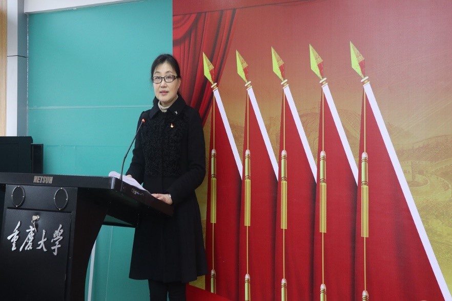 王旭代表学校党委讲话。她首先代表学校党委,对大会的召开表示热烈祝贺,向高辣文