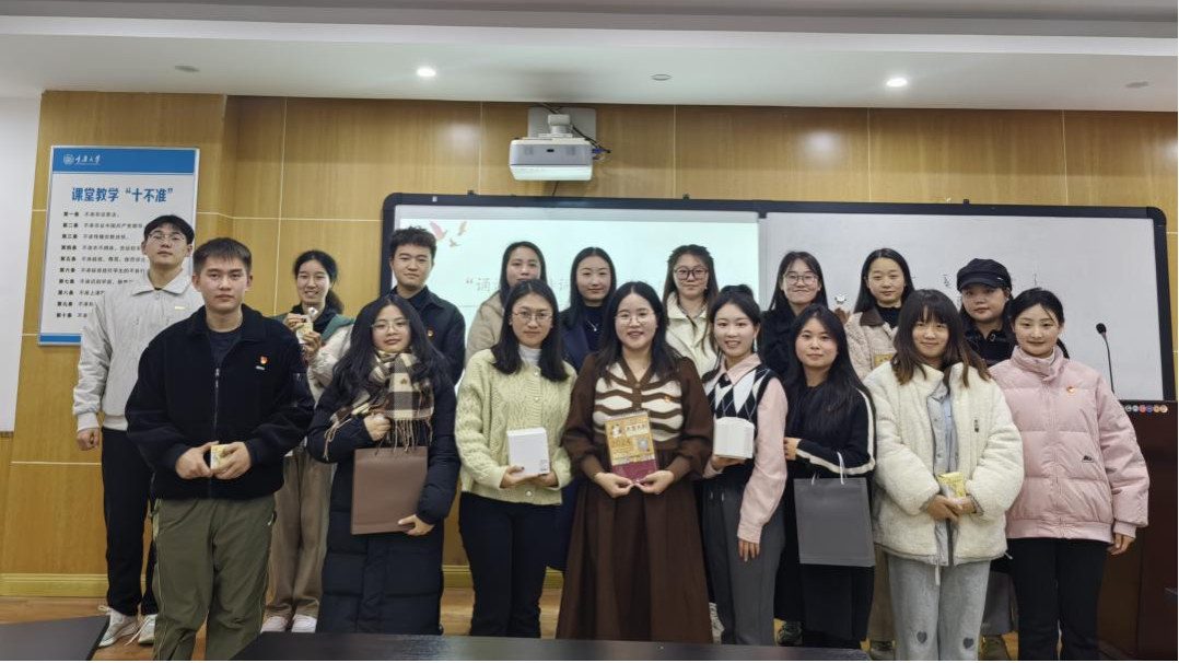 研究生二支部于2023年12月21日,在学院412会议室举办“诵读红色诗词,致敬伟人风采——毛泽东诗词朗诵”主题党日活动,支部党员和部分积极分子参加活动。活动由支部书记彭蓉主持。