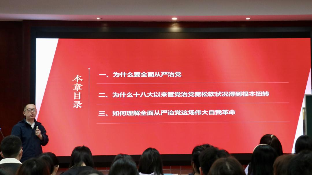 最后,蒋楼阐述了“如何理解全面从严治党这场伟大自我革命”。他表示,全面从严治党作为一场伟大自我革命,不仅体现了我们党独特的政治品质,也展示了我们党坚定的决心和强大的行动力。在未来的征程中,我们将继续以自我革命的勇气和智慧,推动全面从严治党向纵深发展,为实现中华民族伟大复兴的中国梦提供坚强保障。