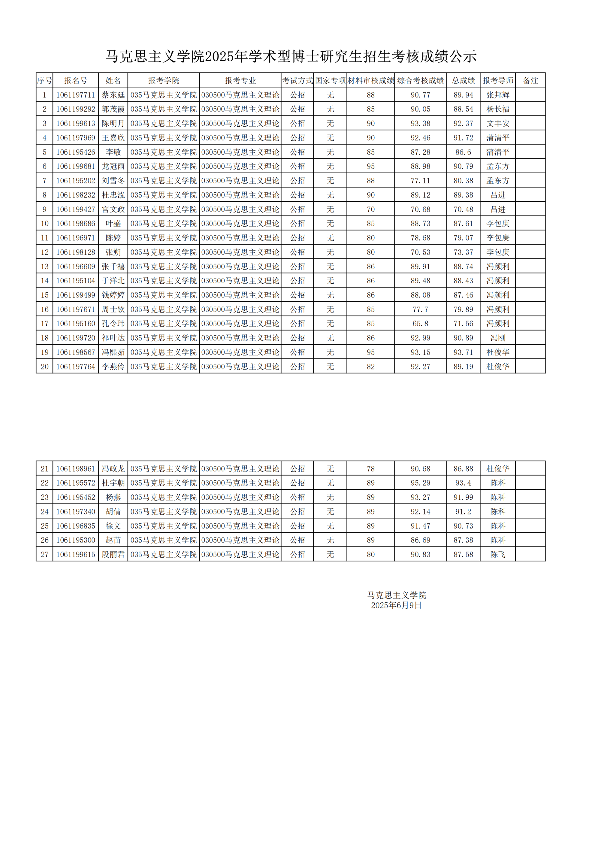 高辣文 2025年学术型博士研究生招生考核成绩公示