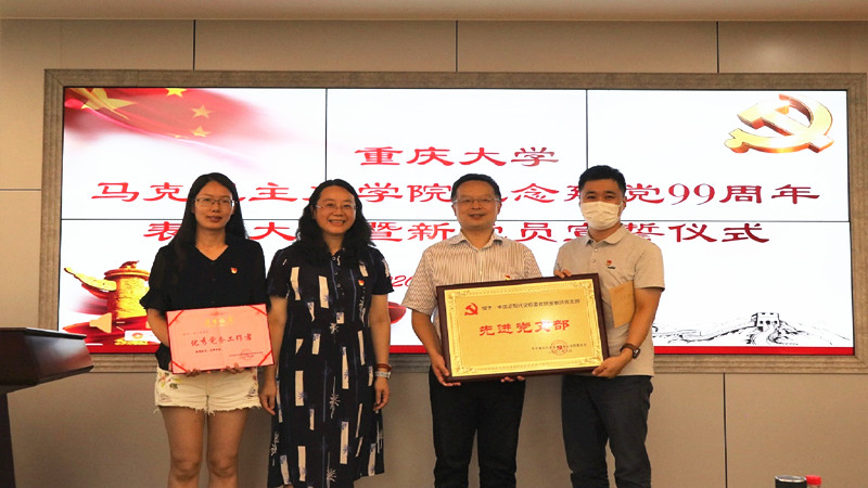 学院党委书记罗滌、副院长徐鲲为优秀共产党员罗慧莲、王超、周志永等13位同志、优秀党务工作者王小凤和先进党支部中国近现代史纲要党支部进行了颁奖。接下来,罗滌书记带领学院新党员面对党旗庄严宣誓,老党员也一起重温了入党誓词。