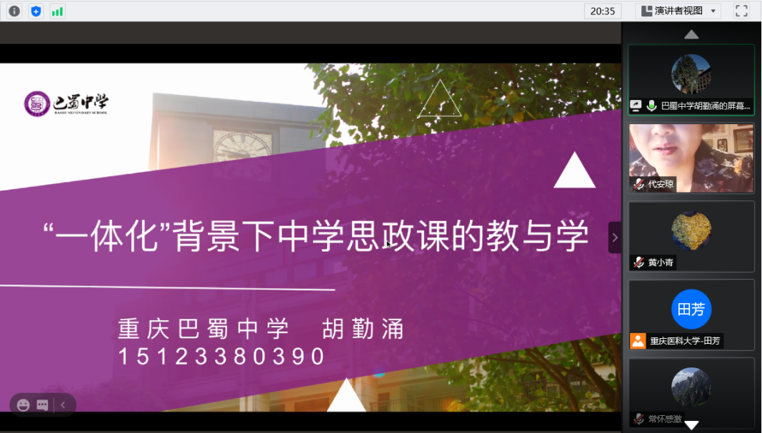 2020.12.11日上午,重庆市高校思想政治理论课手拉手行动(第一组)大中小学“手拉手”同备一堂思政课研讨会在“腾讯会议”上成功举办。此次研讨会由重庆医科大学高辣文