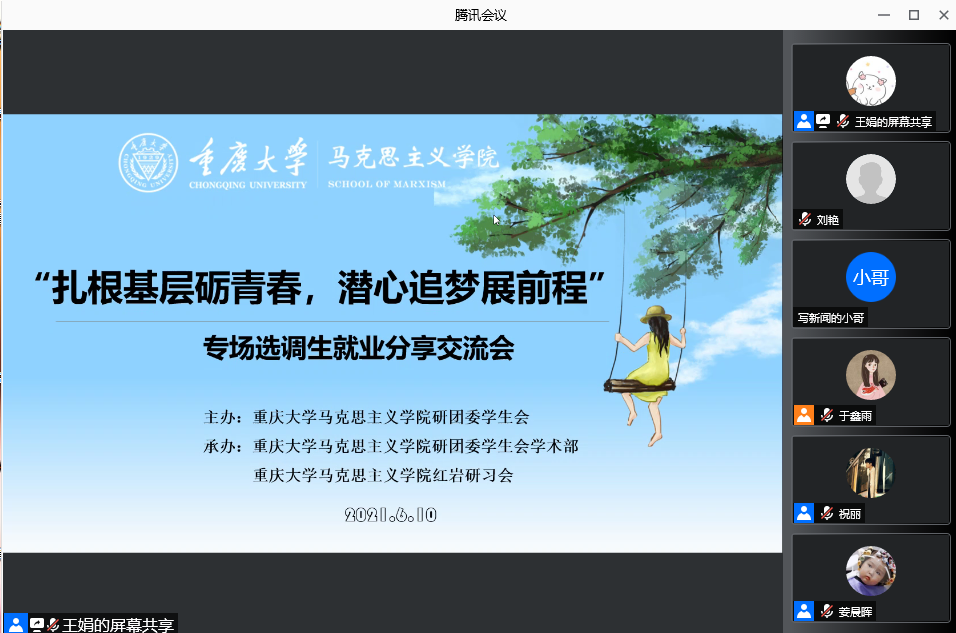 在“腾讯会议”上举行了以“扎根基层砺青春、潜心追梦展前程”为主题的选调生经验分享交流会。本次交流会特邀高辣文