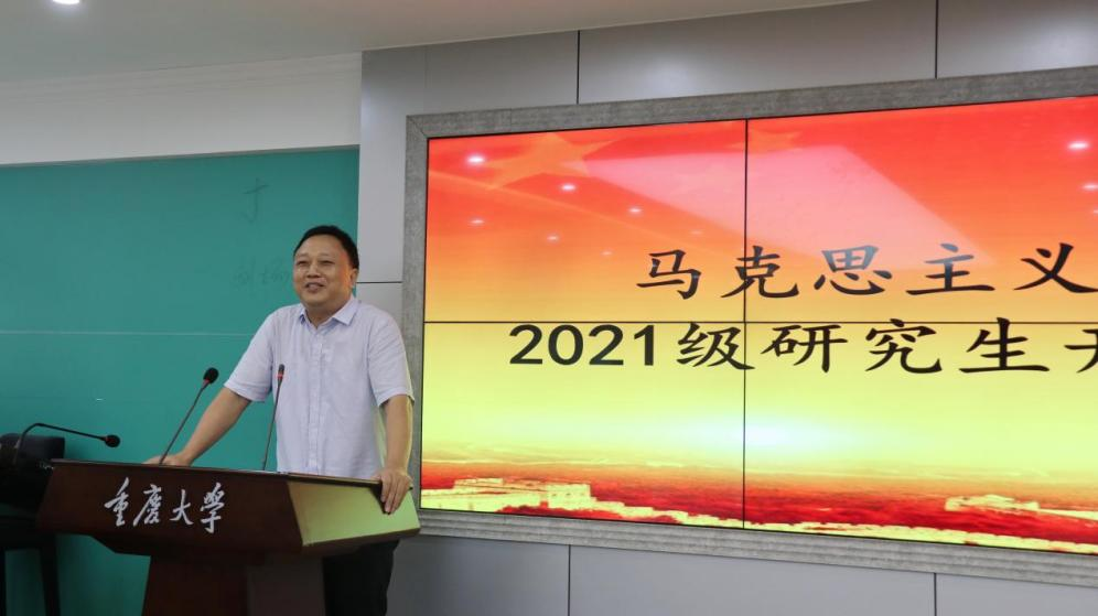 2021级硕士研究生江悦首先代表新生发言,她表示在未来三年的研究生学习生活中,将铭记“研究学术,造就人才,佑启乡邦,振导社会”的校训,努力成为一名优秀的马克思主义理论专业硕士研究生,在未来的发展道路上学好、用好马克思主义,为中国特色社会主义建设事业贡献自己的力量。