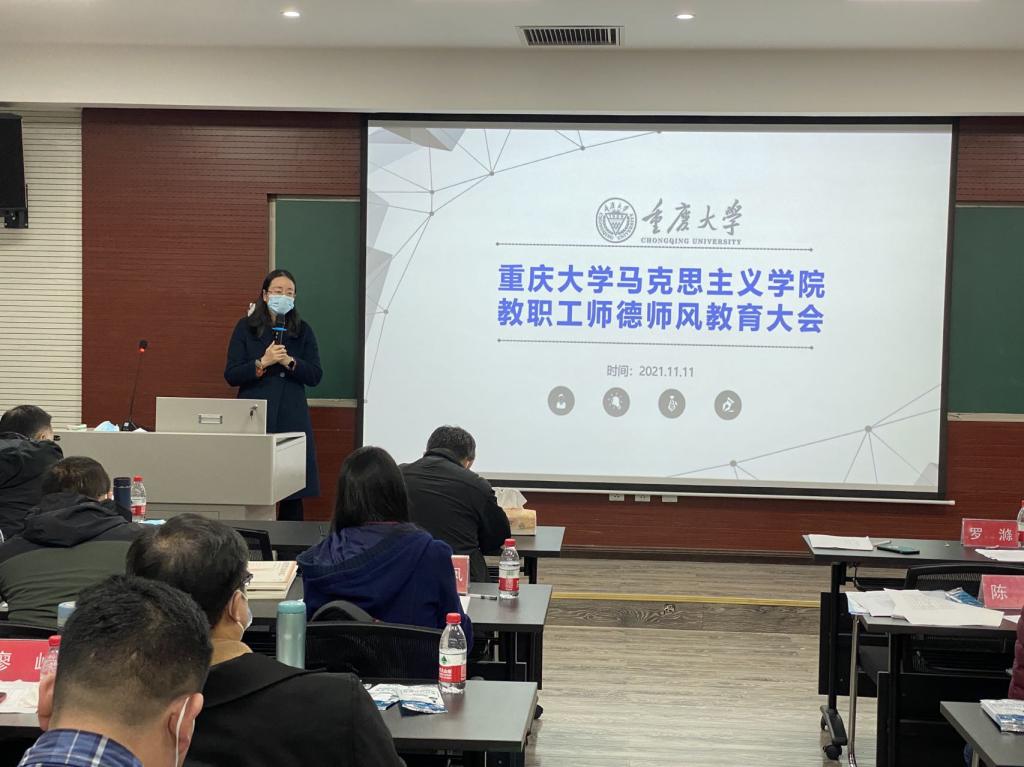 召开师德师风教育大会,学院全体教职工参加会议。会议由学院党委书记罗滌主持。